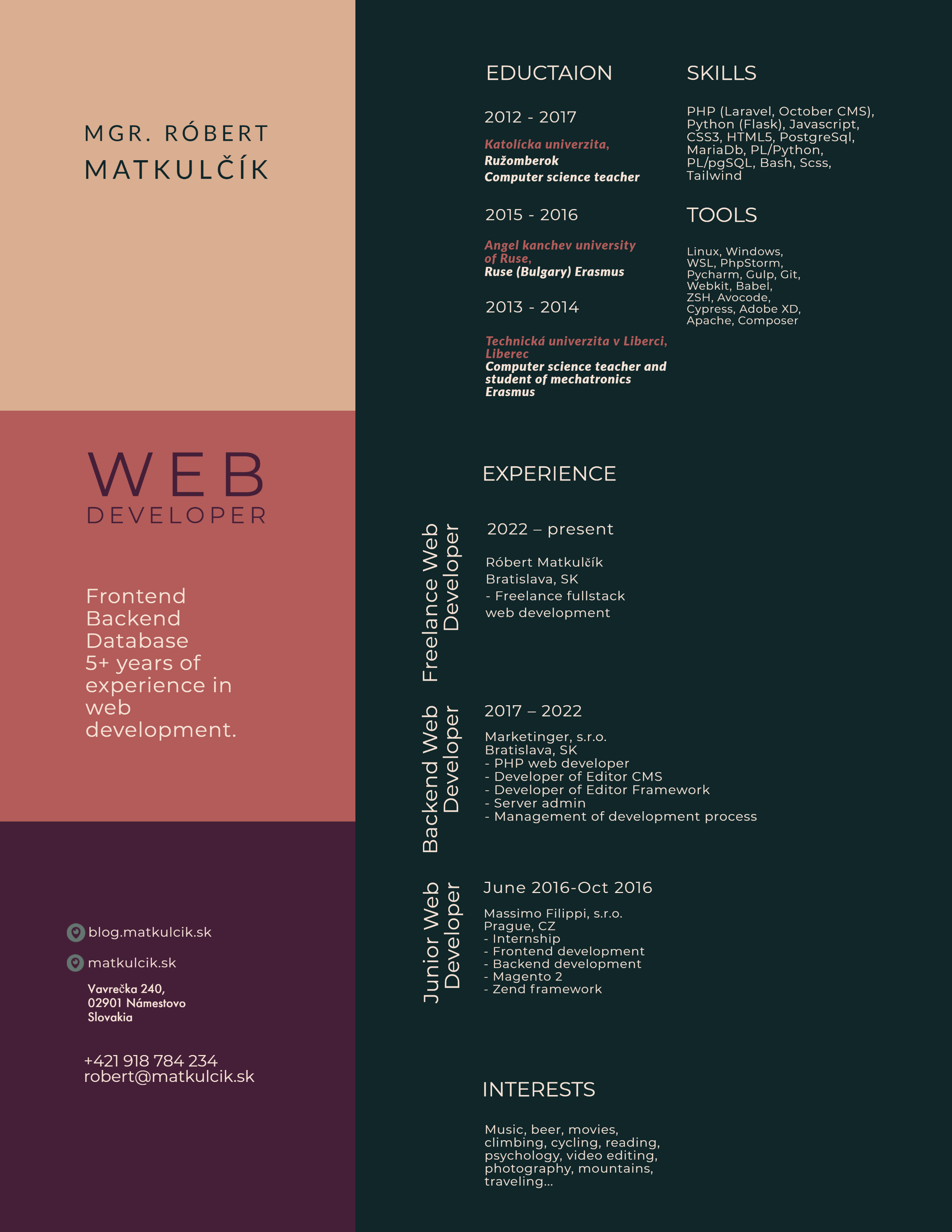 Kompletný prehľad mojich technologických zručností, vzdelania a pracovných skúseností na pozícii softvérového inžiniera.
